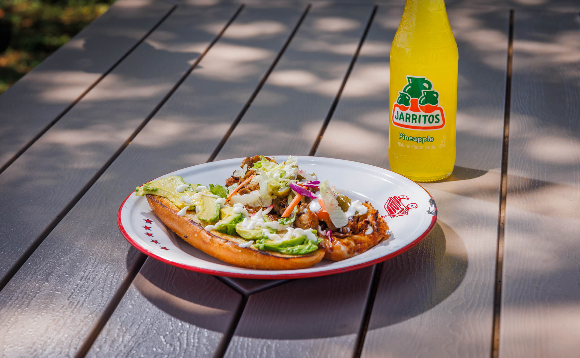 Traditional Mexican sub-like "Torta" (6 inch), melted cheese on one side and spicy guacamole on the other side with one of our cooked meats of your choice and selected toppings.